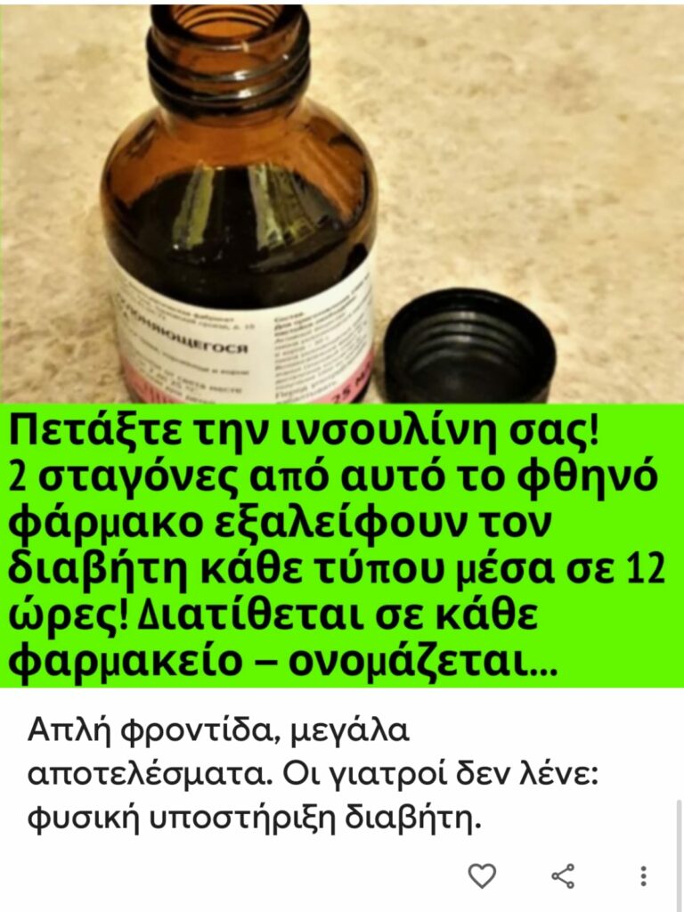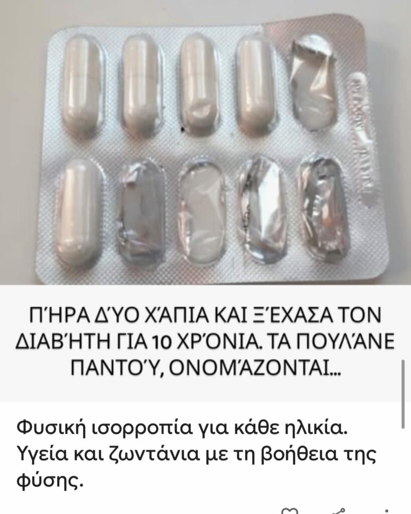 Όπως σημειώνεται σε δημοσίευμα του Philenews, όλο και περισσότερες διαφημίσεις στο διαδίκτυο υπόσχονται «φυσικές λύσεις» που εξαφανίζουν τον διαβήτη. Άλλες μιλούν για θαυματουργά χάπια, άλλες για σταγόνες ή συσκευές που «ρυθμίζουν» το σάκχαρο χωρίς φάρμακα. «Πετάξτε την ινσουλίνη σας! Δύο σταγόνες από αυτό το φθηνό φάρμακο εξαλείφουν τον διαβήτη κάθε τύπου μέσα σε 12 ώρες. Διατίθεται σε κάθε φαρμακείο».