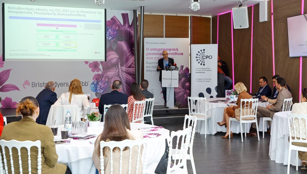 Η βιοφαρμακευτική εταιρεία Bristol Myers Squibb (BMS), έθεσε την Υπερτροφική Μυοκαρδιοπάθεια στο επίκεντρο πρόσφατης διάσκεψης Τύπου, στην Κύπρο. Κύπριοι καρδιολόγοι, ειδικοί στο εν λόγω αντικείμενο, φώτισαν τις κλινικές πτυχές, τη συμπτωματολογία και την αξία της έγκαιρης διάγνωσης και της αποτελεσματικής αντιμετώπισης της νόσου, για τη βελτίωση της ποιότητας ζωής των ασθενών. Η εκδήλωση πραγματοποιήθηκε υπό την αιγίδα της Καρδιολογικής Εταιρείας Κύπρου.