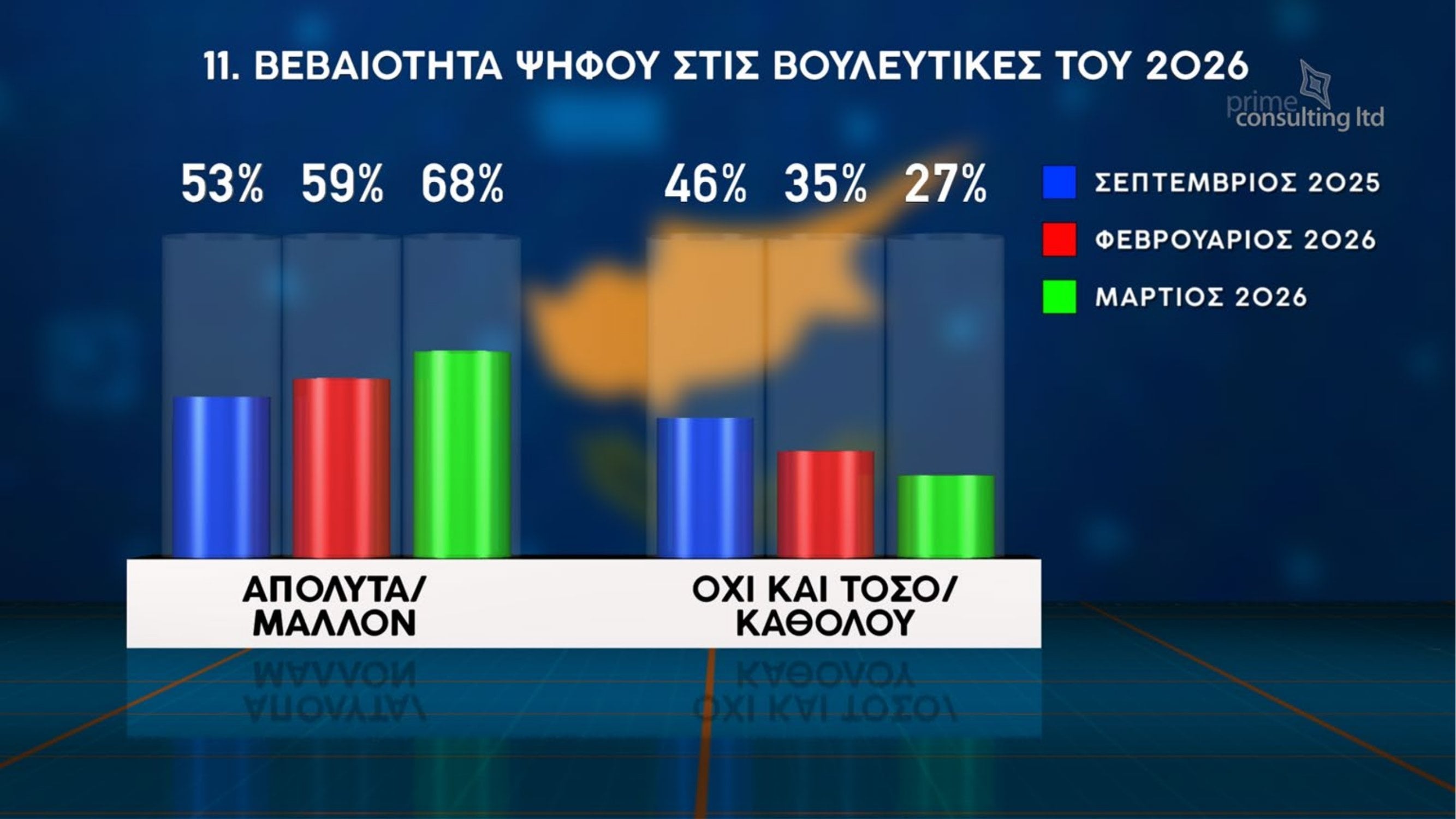 Η δημοσκόπηση καταγράφει επίσης αυξημένη βεβαιότητα συμμετοχής στις επόμενες βουλευτικές εκλογές, με το 68% να δηλώνει ότι είναι απολύτως ή μάλλον βέβαιο πως θα ψηφίσει, ποσοστό αυξημένο σε σχέση με τις προηγούμενες μετρήσεις.