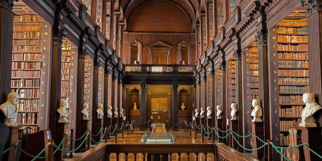 Το πιο εμβληματικό της χαρακτηριστικό είναι το περίφημο Long Room — ένας χώρος μήκους 65 μέτρων, επενδεδυμένος με προτομές διάσημων λογοτεχνικών μορφών.