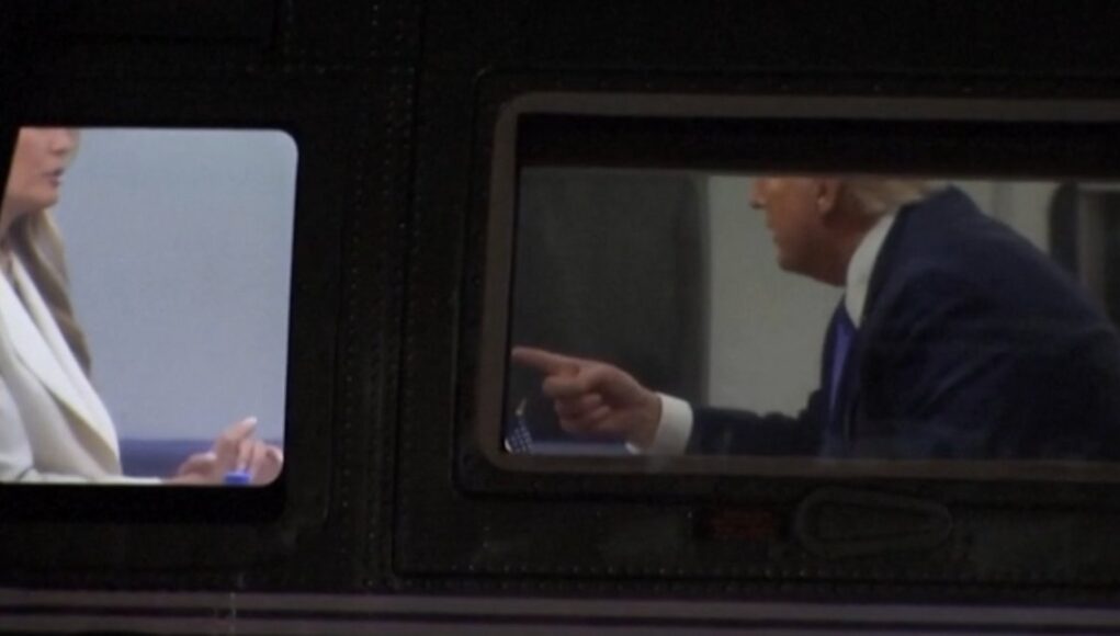 Οι κάμερες του Sky News κατέγραψαν τη Μελάνια να κουνάει το κεφάλι της και να κάνει χειρονομία προς τον σύζυγό της, πριν εκείνος την διακόψει με μία κίνηση του χεριού του, κουνώντας το δάχτυλό του. Ωστόσο, αφού τελείωσαν τη συζήτηση βγήκαν από το ελικόπτερο πιασμένοι χέρι χέρι, ενώ ο Τραμπ χαιρέτησε τους δημοσιογράφους.