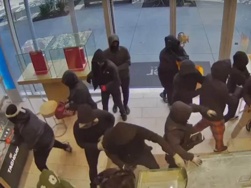 Το ακριβώς αντίθετα συνέβη στην Καλιφόρνια, όπου τουλάχιστον 20 άτομα έκαναν έφοδο σε ένα κοσμηματοπωλείο στο Σαν Ραμόν μέρα μεσημέρι, σπάζοντας ότι έβρισκαν μπροστά τους. Το σχέδιο εδώ ήταν ένα: «ορμάμε και αρπάζουμε».