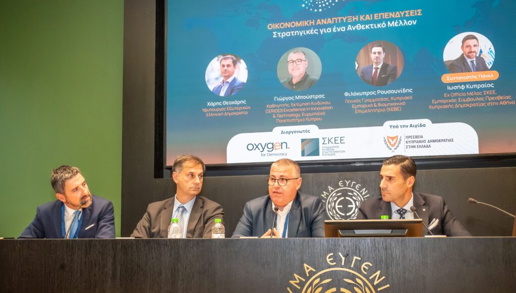 Το Cyprus Forum Athens ολοκληρώθηκε με ένα πάνελ αφιερωμένο στην Οικονομία, την Ανάπτυξη και τις Επενδύσεις αλλά και τις Στρατηγικές για ένα Ανθεκτικό Μέλλον μέσα από την τεχνολογία, την καινοτομία και τις συμμαχίες των δύο χωρών.