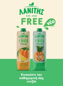 Οι χυμοί ΛΑΝΙΤΗΣ, η αγαπημένη μάρκα χυμών της Coca-Cola HBC Κύπρου, καινοτομούν και παρουσιάζουν στους Κύπριους καταναλωτές τη νέα σειρά χυμών ΛΑΝΙΤΗΣ FREE, χωρίς προσθήκη ζάχαρης, με φυσικά σάκχαρα των φρούτων & με γλυκαντικό από το φυτό στέβια και με βιταμίνες που συμβάλλουν στην ενίσχυση της ενέργειας & θωρακίζουν την λειτουργία του ανοσοποιητικού συστήματος.