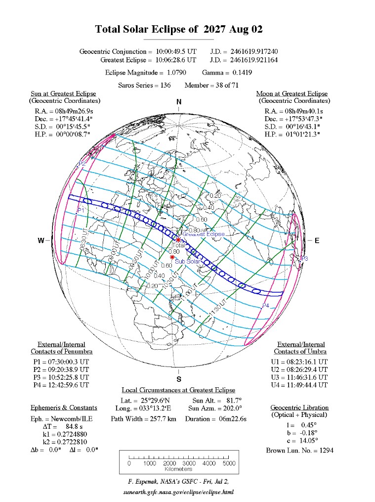 Η NASA υπενθυμίζει ότι μέσα στον αιώνα θα υπάρξουν και άλλες μακρές εκλείψεις — όπως εκείνες του 2045, 2060, 2063, 2078, 2081 και 2096 — καμία όμως δεν θα ξεπεράσει τα 6 λεπτά και 23 δευτερόλεπτα του 2027.