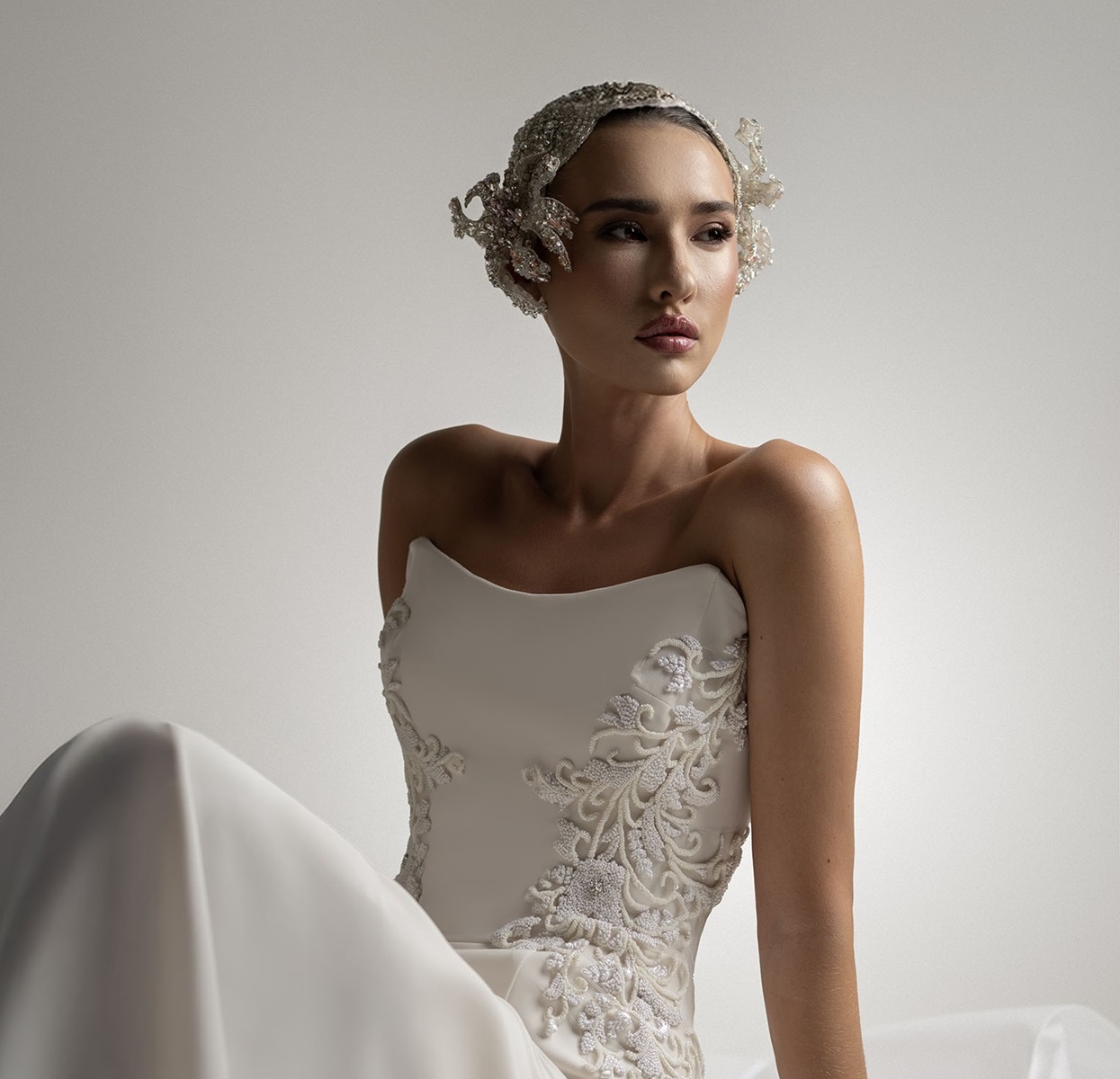 Τα στράπλες νυφικά επαναπροσδιορίζονται και πρωταγωνιστούν με διάφορα υφάσματα και στυλ. Αποσπώμενα μανίκια και αξεσουάρ μεταμορφώνουν μια νυφική δημιουργία, ενώ εμβληματικά κεντήματα στο μπούστο μετατρέπουν ένα απλό σχέδιο σε έργο τέχνης.
