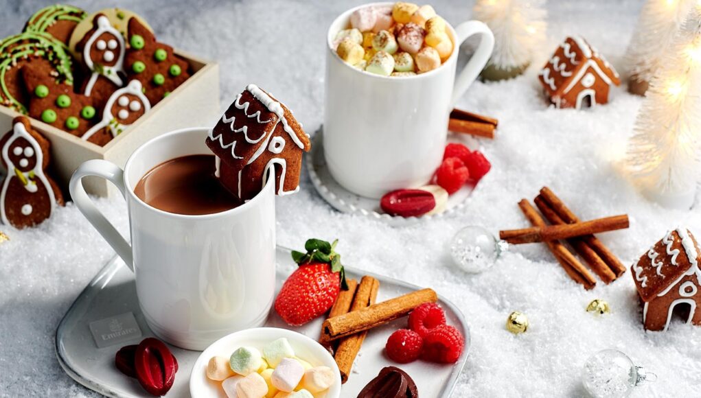 Από τις 24 έως τις 26 Δεκεμβρίου, οι επιβάτες που αναχωρούν από το Ντουμπάι θα απολαμβάνουν μικρές εορταστικές λιχουδιές όπως τρούφες μαύρης σοκολάτας στην Οικονομική Θέση, χειροποίητα μπισκότα gingerbread στην Premium Οικονομική και στη Διακεκριμένη θέση και μια απολαυστική raspberry Paris-Brest στην Πρώτη Θέση.