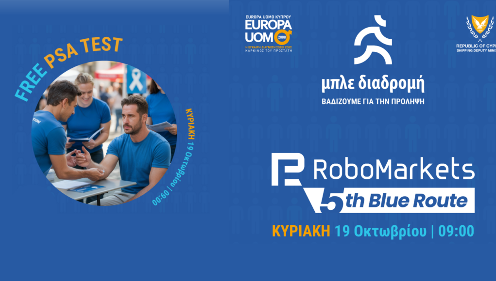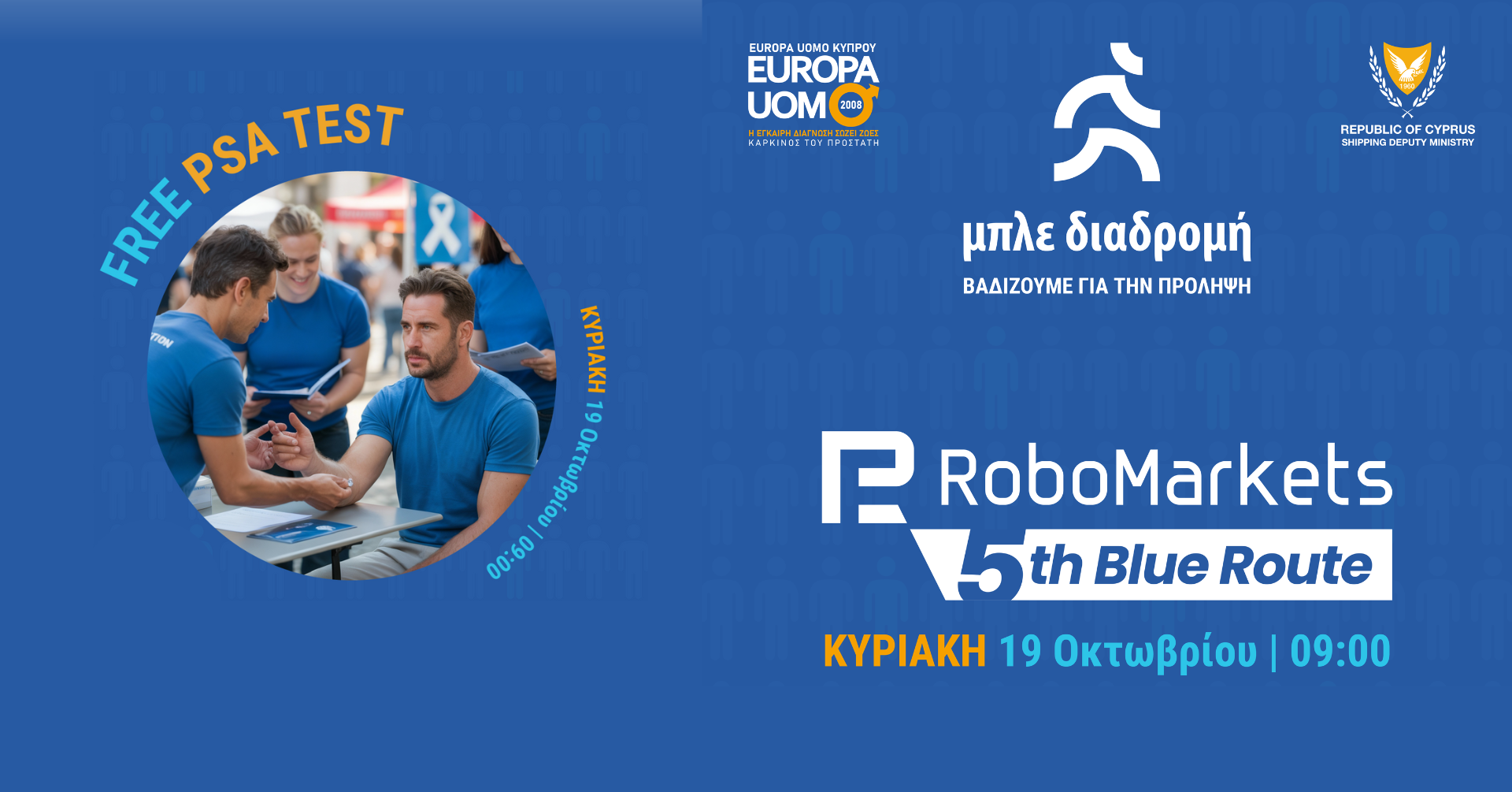 Αυτή την Κυριακή, 19 Οκτωβρίου 2025, η Λεμεσός θα φορέσει το πιο ουσιαστικό της χρώμα, το μπλε της ελπίδας και της ζωής. Με το μήνυμα «Κάθε μέτρο μετρά – κάθε ζωή αξίζει», ο Σύνδεσμος Europa Uomo Κύπρου διοργανώνει τη “RoboMarkets 5η Μπλε Διαδρομή για τη Ζωή”, μια εκδήλωση αφιερωμένη στην ενημέρωση και ευαισθητοποίηση του κοινού για τον καρκίνο του προστάτη, στέλνοντας ένα ηχηρό μήνυμα αλληλεγγύης και πρόληψης.