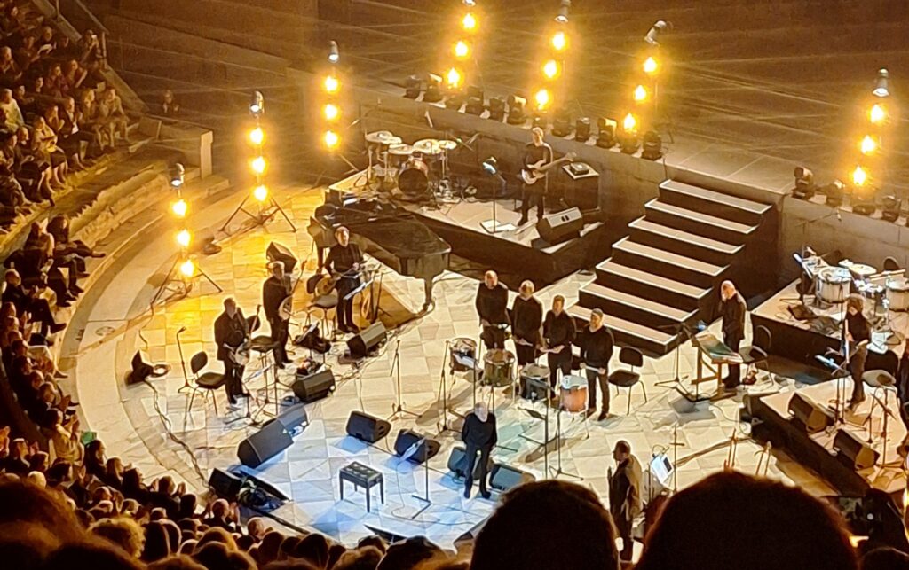 Κάποια στιγμή, έκλεισα τα μάτια. Η μουσική ανέβαινε, απλωνόταν πάνω από το θέατρο, χανόταν στην Ακρόπολη και ξαναγύριζε πίσω σαν ανάσα. Ήταν σαν να αφουγκραζόμουν όλα τα χρόνια που πέρασαν μέσα από τις νότες – τα καλοκαίρια της παιδικής ηλικίας, τα πρόσωπα που χάθηκαν, τις εποχές που αλλάζουν, αλλά και αυτά που προσμένω να ‘ρθουν.