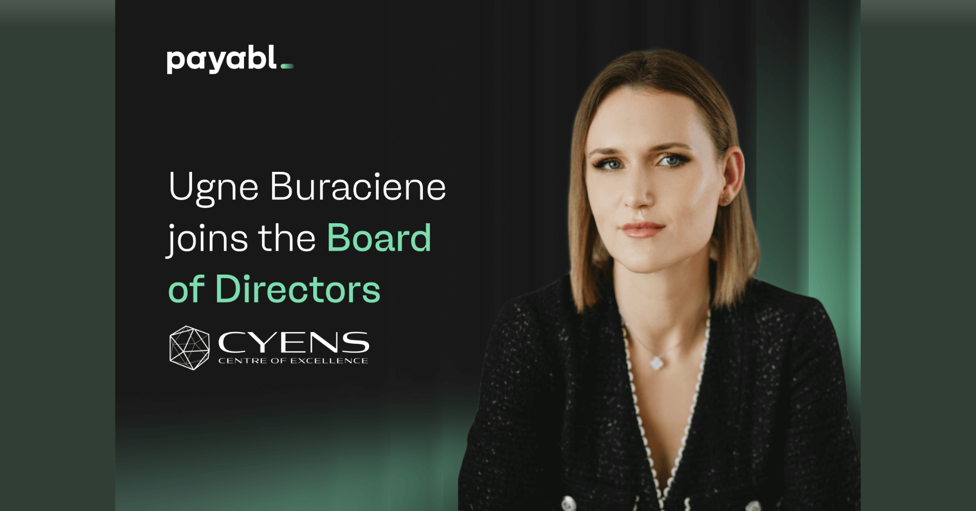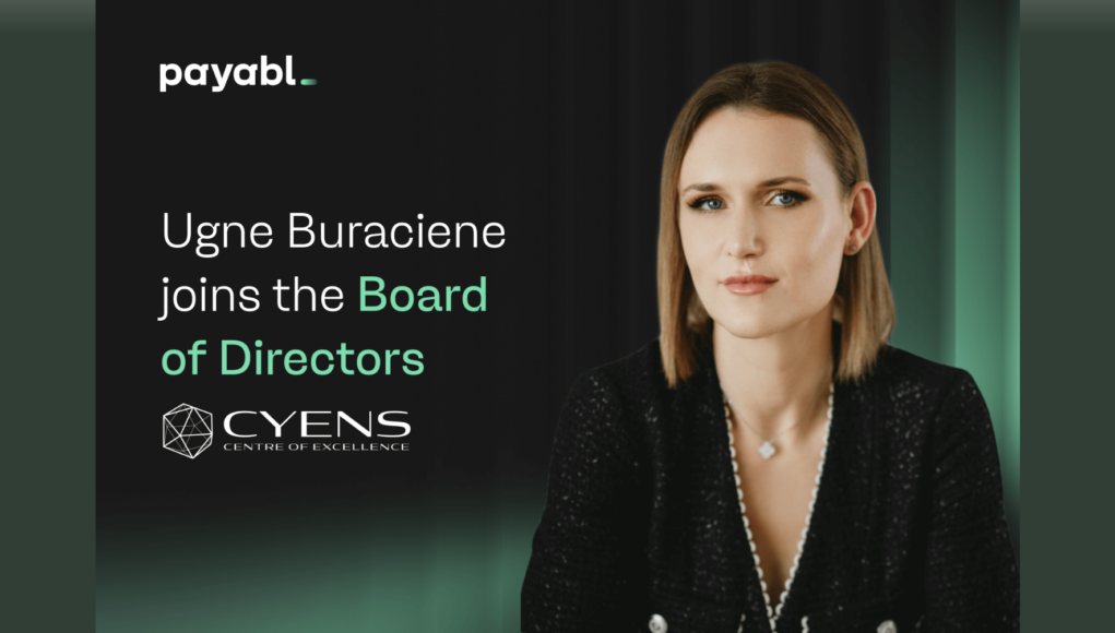 Η Ugne Buraciene, Group CEO της payabl., διορίστηκε ως Μη Εκτελεστικό Μέλος στο Διοικητικό Συμβούλιο του Κέντρου Αριστείας CYENS, του κορυφαίου ερευνητικού οργανισμού της Κύπρου που δραστηριοποιείται στην Έρευνα και Καινοτομία Τεχνολογιών Πληροφορικής και Επικοινωνίας, με εξειδίκευση στους τομείς των Διαδραστικών Μέσων, Έξυπνων Συστημάτων και Αναδυόμενων Τεχνολογιών.