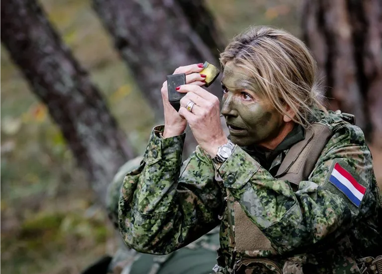 Φορώντας στρατιωτική παραλλαγή και φούμο στο πρόσωπο, η βασίλισσα Μάξιμα της Ολλανδίας εμφανίστηκε σχεδόν αγνώριστη την Τρίτη σε κέντρο εκπαίδευσης των ολλανδικών ενόπλων δυνάμεων κοντά στο Άμστερνταμ.