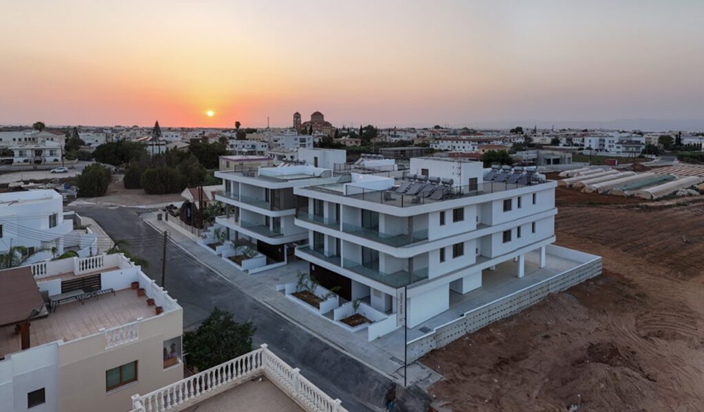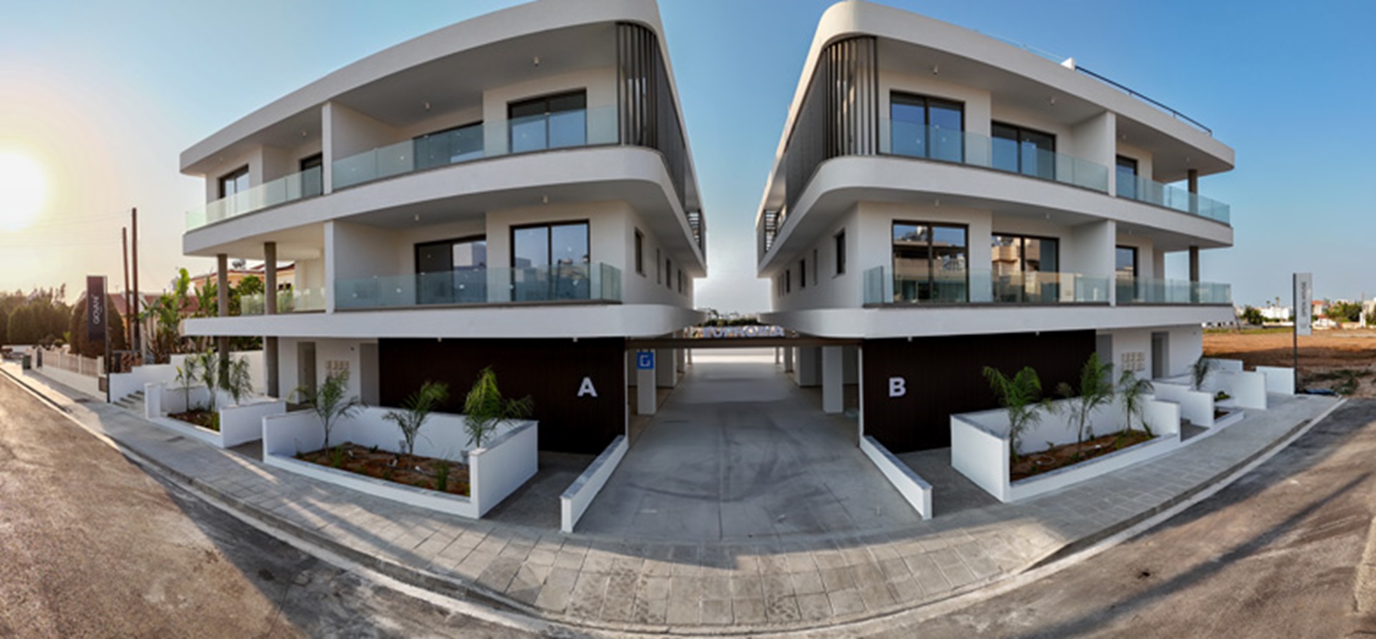 Η οικιστική ανάπτυξη εκτείνεται σε δυο μπλοκ διαμερισμάτων και περιλαμβάνει συνολικά δεκαέξι μοντέρνα διαμερίσματα του ενός και των δυο υπνοδωματίων, με καλυμμένους χώρους 52 – 75 τετραγωνικά μέτρα και μεγάλες καλυμμένες βεράντες 11- 20 τετραγωνικά μέτρα.