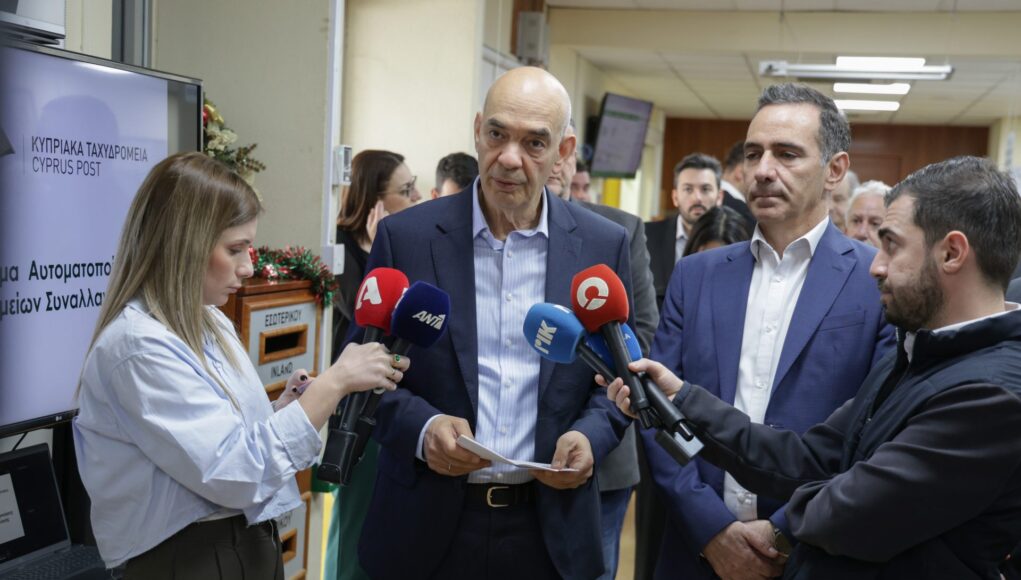 Πραγματοποιήθηκε σήμερα Τρίτη, 02 Δεκεμβρίου 2025, συνέντευξη Τύπου στον χώρο εξυπηρέτησης του Επαρχιακού Ταχυδρομικού Γραφείου Λευκωσίας, για την παρουσίαση του συστήματος αυτοματοποίησης σημείων συναλλαγής με το κοινό των Κυπριακών Ταχυδρομείων. Στη διάσκεψη παρευρέθηκαν ο Υπουργός Μεταφορών, Επικοινωνιών και Έργων κ. Αλέξης Βαφεάδης, ο Υφυπουργός Έρευνας, Καινοτομίας και Ψηφιακής Πολιτικής δρ Νικόδημος Δαμιανού, ο Αναπληρωτής Διευθυντής των Κυπριακών Ταχυδρομείων κ. Παύλος Παυλίδης και η Αναπληρώτρια Διευθύντρια του Τμήματος Υπηρεσιών Πληροφορικής κα Νόρμα Κλίππη-Πεκρή.