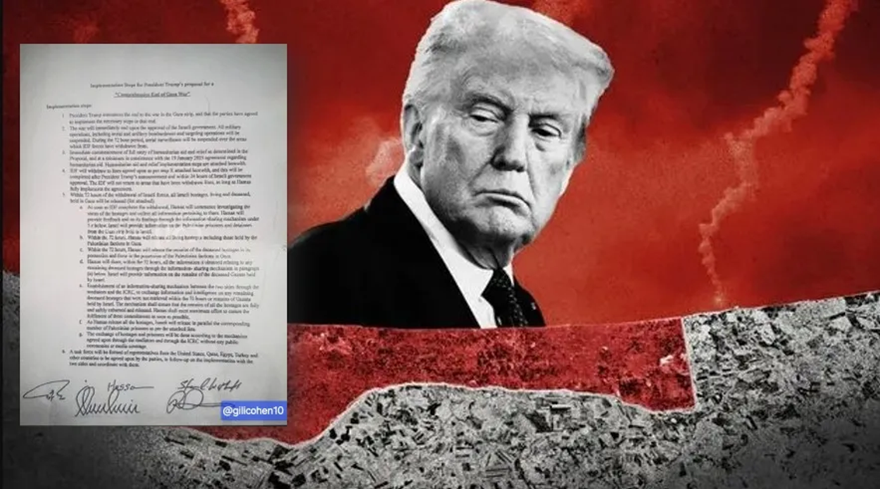 Στη δημοσιότητα δόθηκε το ιστορικό εγγραφο με τίτλο «Implementation Steps for President Trump’s proposal for a Comprehensive End of Gaza War» με τα βήματα εφαρμογής του σχεδίου του προέδρου των ΗΠΑ Ντόναλντ Τραμπ για τον τερματισμό του πολέμου στη Γάζα, σε συνεργασία με Ισραήλ, Χαμάς, Κατάρ, Αίγυπτο και Τουρκία.