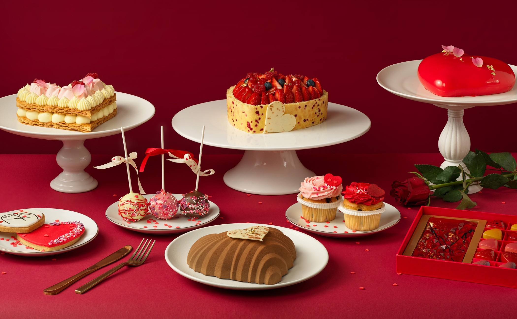 Για τις πιο μεγάλες χειρονομίες αγάπης, οι εντυπωσιακές τούρτες σε σχήμα καρδιάς έρχονται σε κλασικές και αγαπημένες γεύσεις όπως Red Velvet, Millefeuille, Chocolate, Fraisier και Strawberry Charlotte, ιδανικές για να μοιραστούν σε ξεχωριστές περιστάσεις.