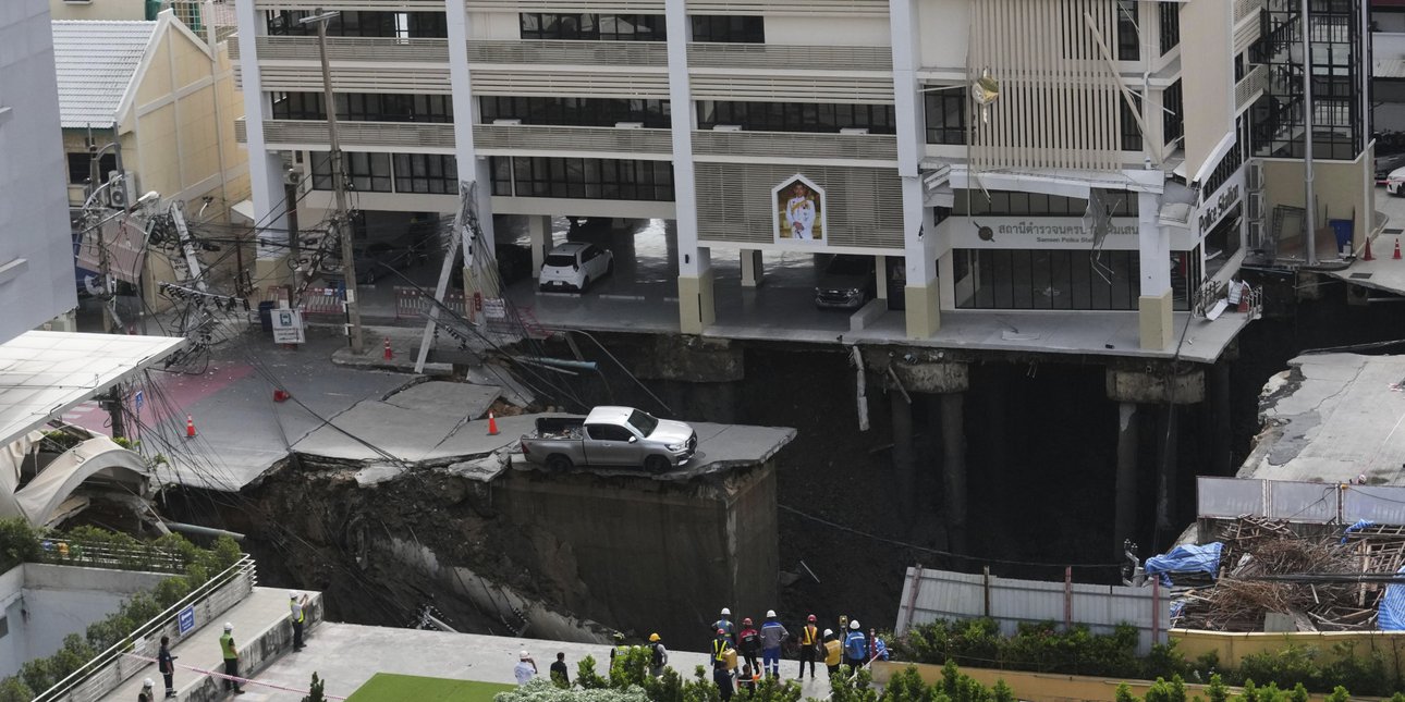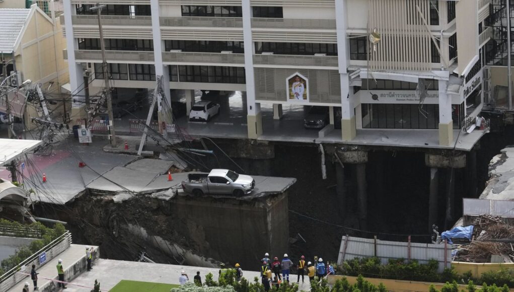 Στην Μπανγκόκ κατέρρευσε τμήμα κεντρικού δρόμου δημιουργώντας μία μεγάλη καταβόθρα που προκάλεσε προβλήματα στην κυκλοφορία, ζημιές σε υποδομές και εκκενώσεις.