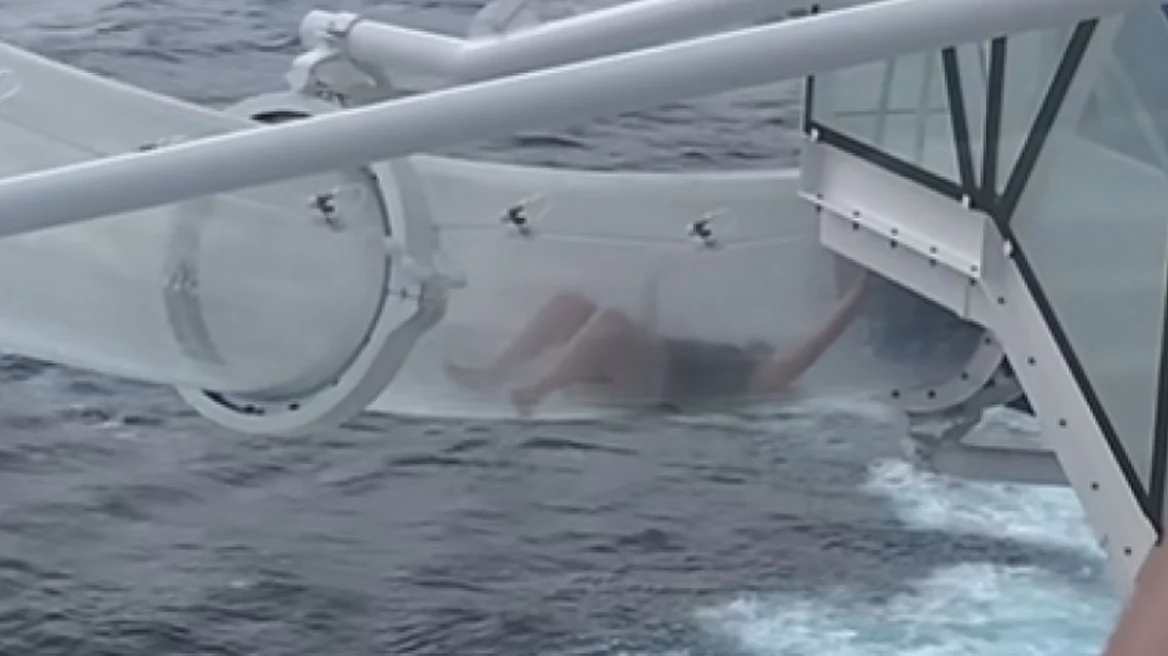 «Θεέ μου, έχει κυριολεκτικά κολλήσει» ακούγεται να λέει ένας από τους επιβάτες του κρουιαζερόπλοιου.